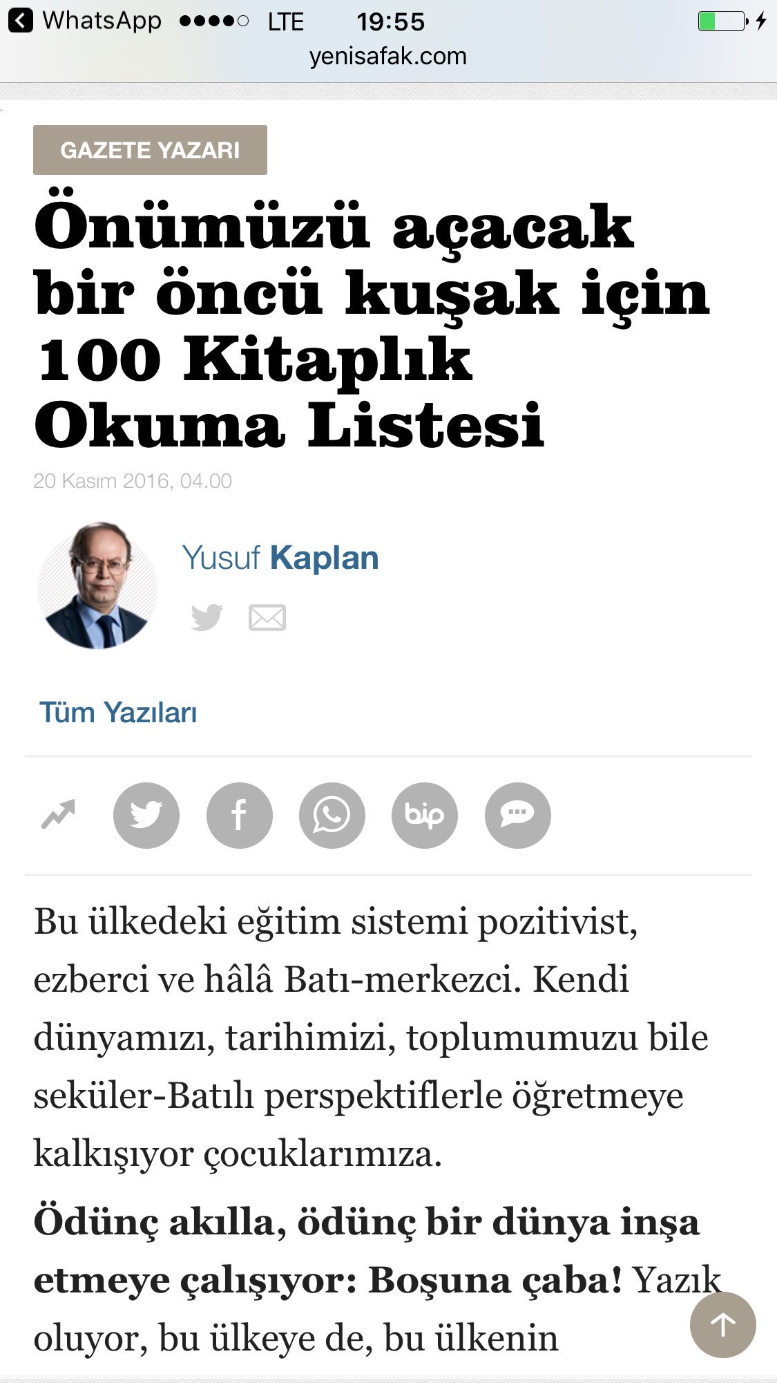 yusuf kaplan onumuzu acacak oncu