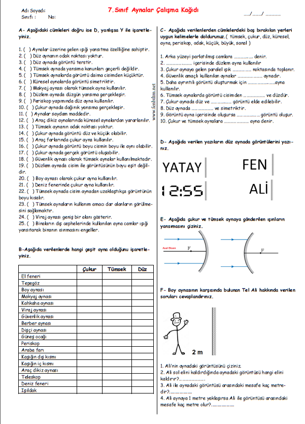 7 sinif is ve enerji calisma kagidi