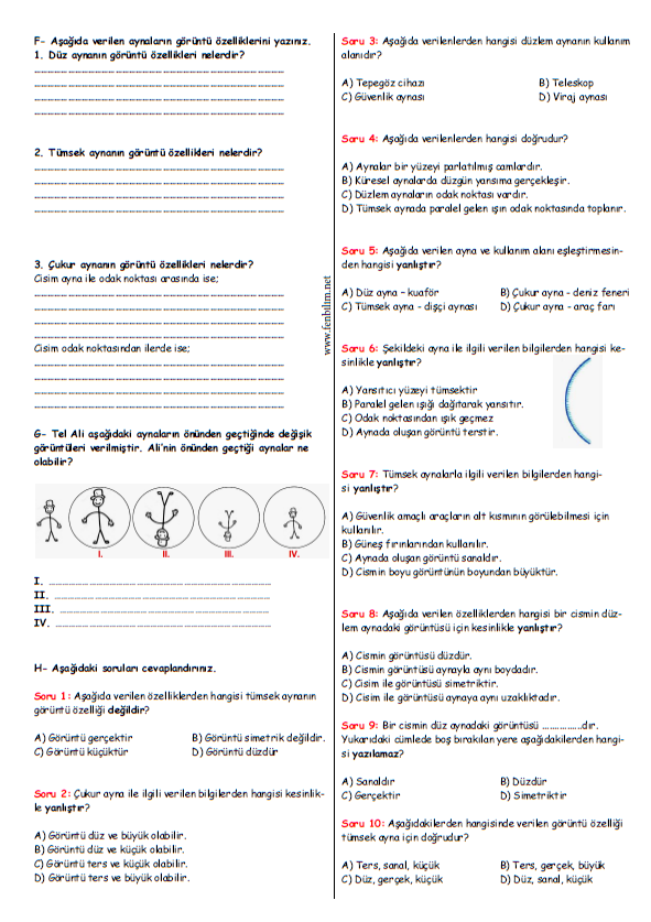 isem 7 sinif fen bilimleri soru bankasi 2020