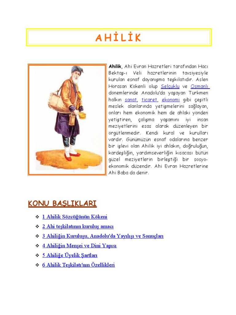ahilik ilkeleri kurallari ve acik