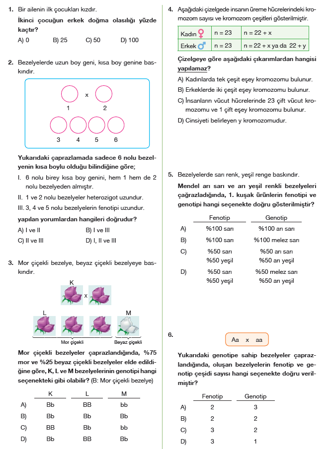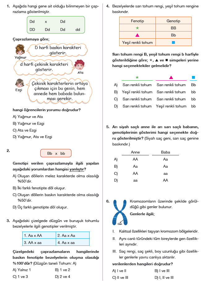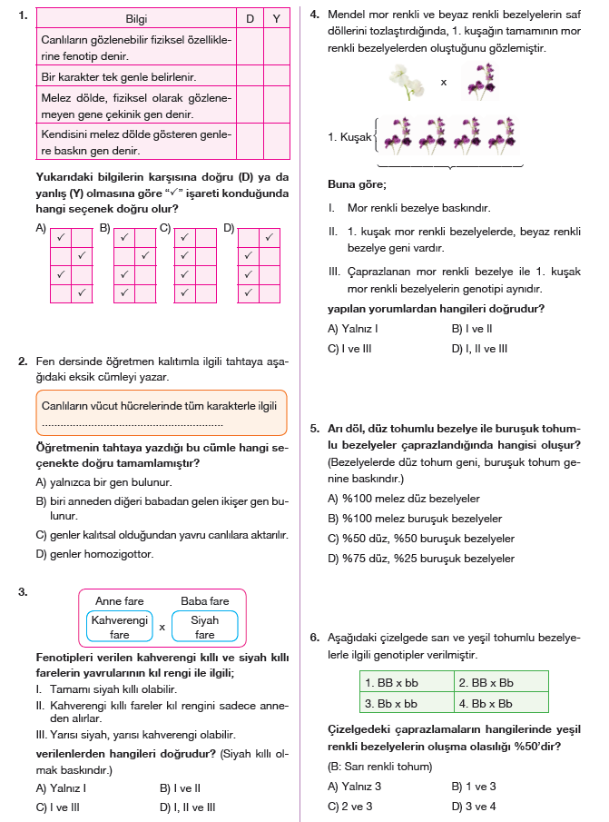8 sinif fen bilimleri kalitim test coz