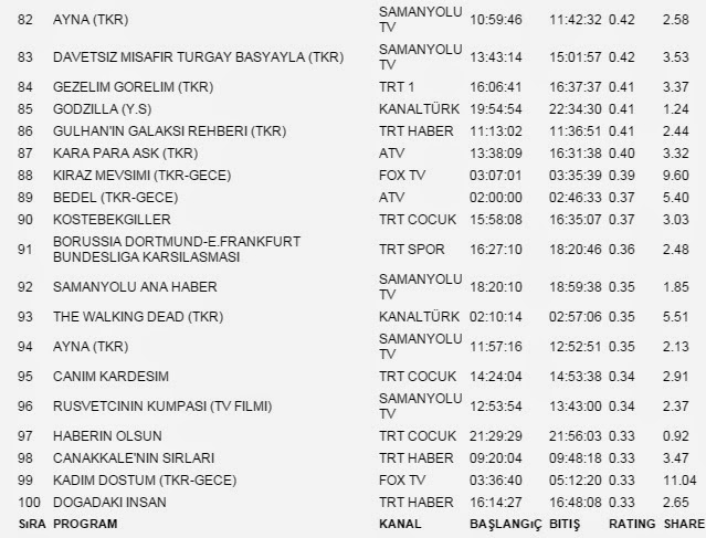 reyting sonuclari dizi reytingleri