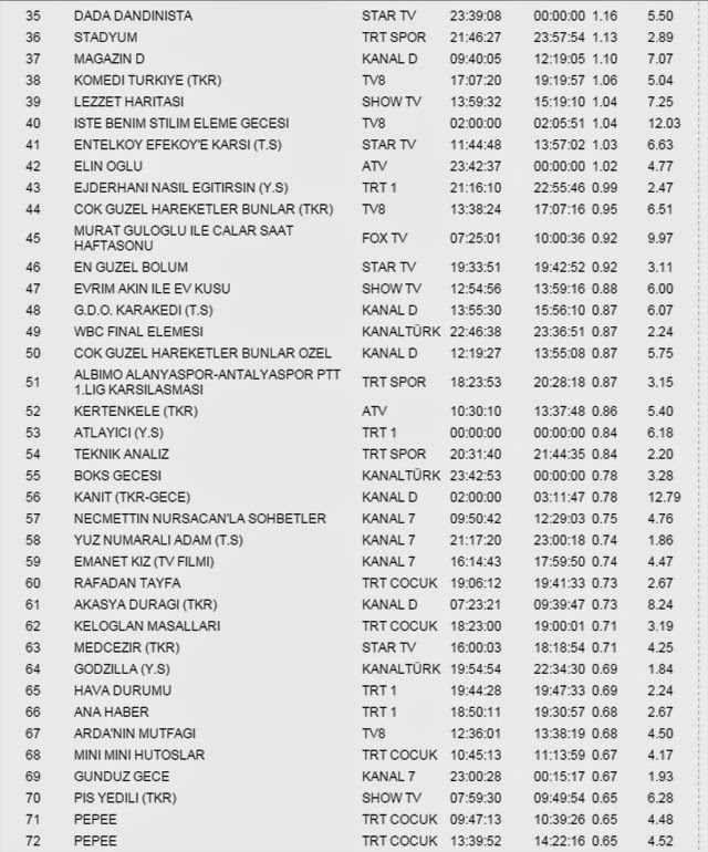 kanal reytingleri reyting bilgileri