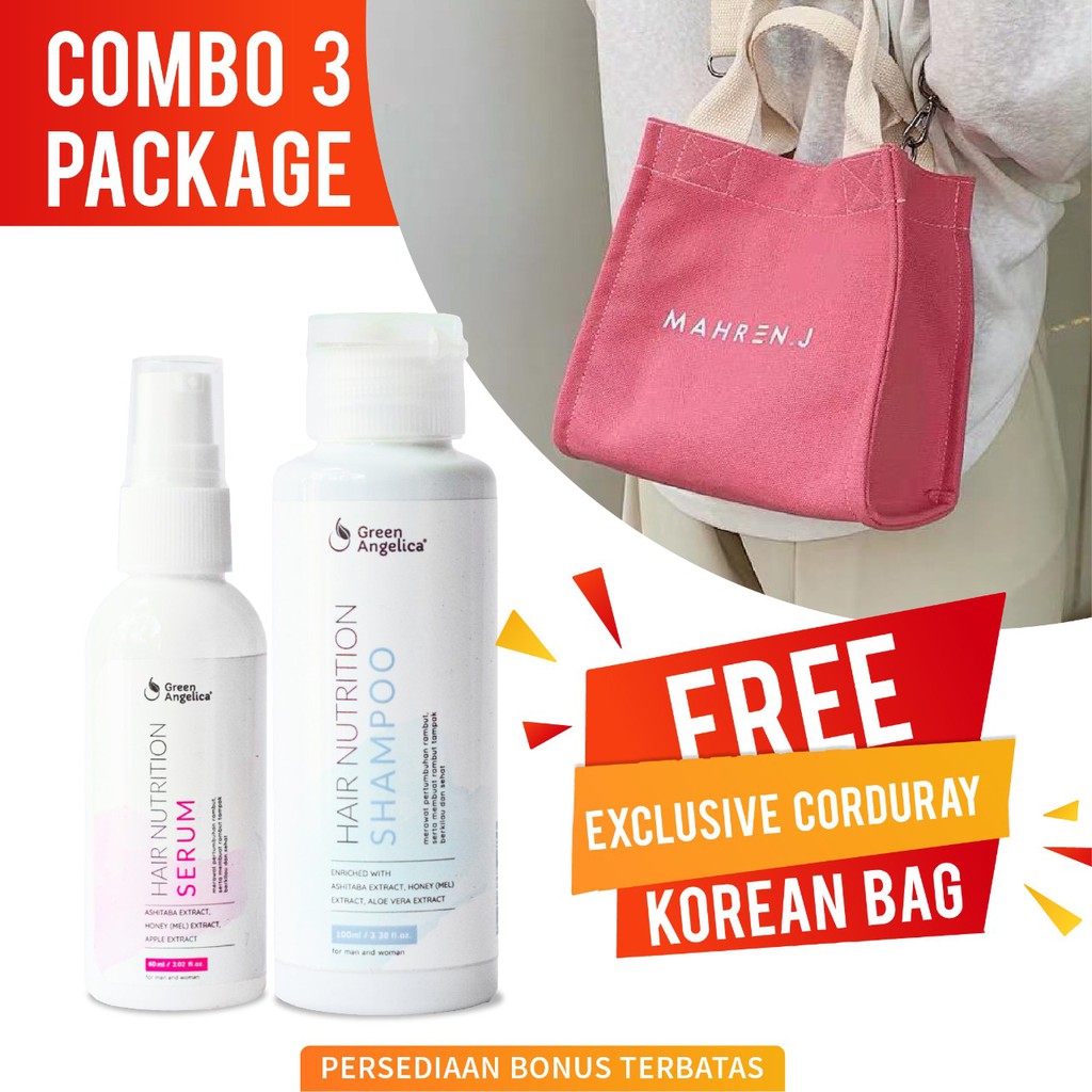 combo paket 3 dari green angelica penumbuh rambut rontok alami pada iklim tropis teruji halal bpom