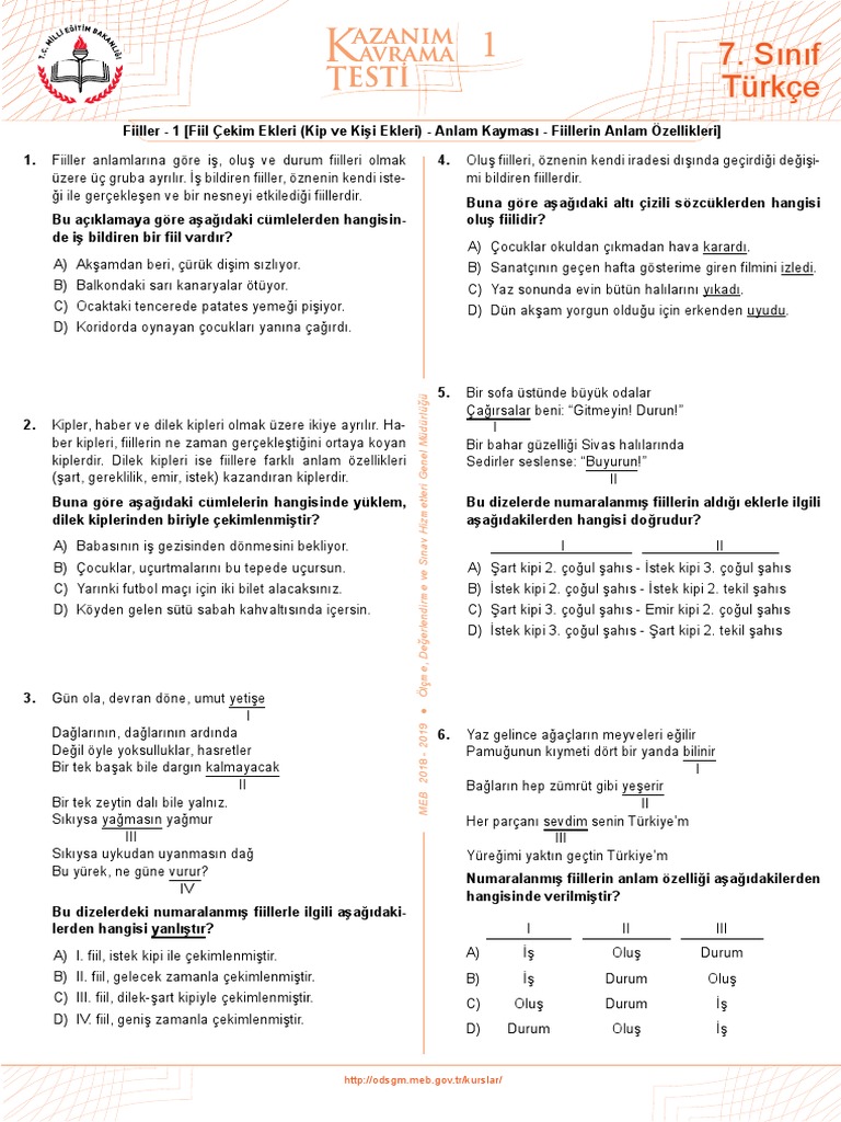 turkce mezun kazanim testleri ve cevap