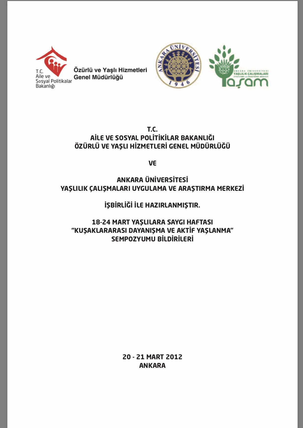 yaslilik calismalari arastirma ve uygulama merkezi ankara universitesi