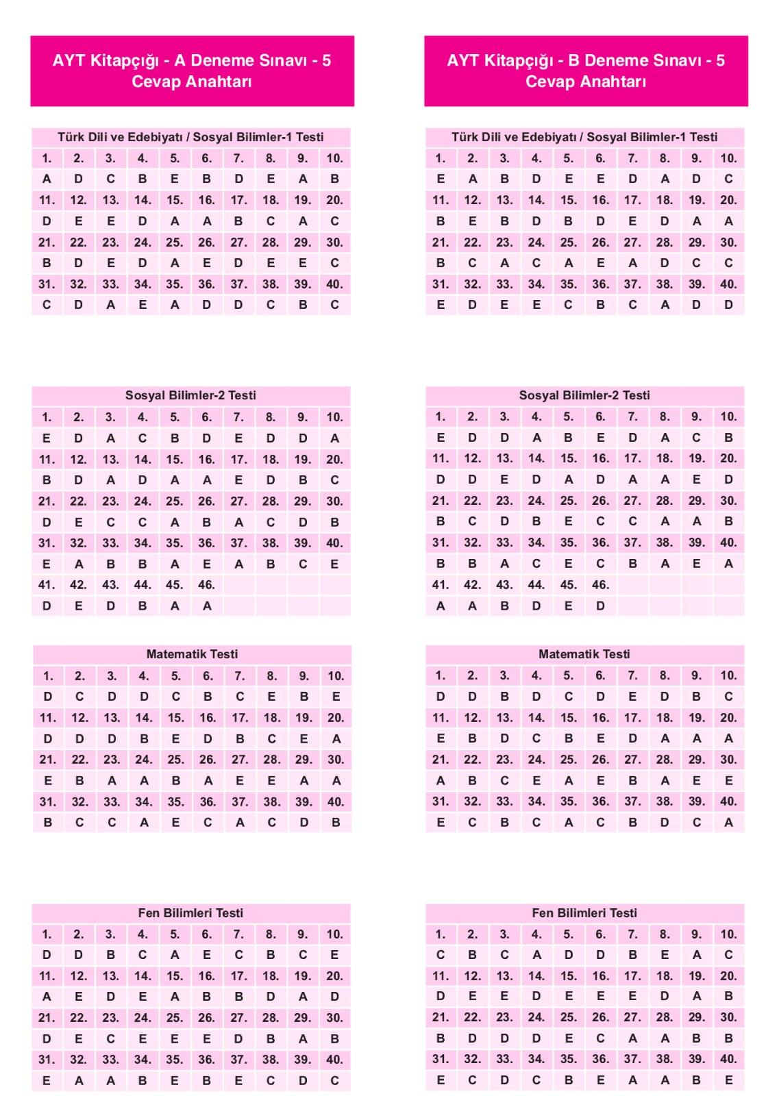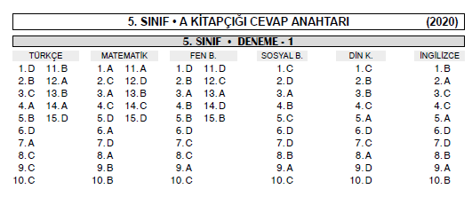deneme cevap anahtarlari